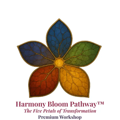 Inside the bootcamp, we trace your story from old scripts → sacred turning point → new, light-filled chapter – a small taste of the work you'll do inside the Harmony Bloom Pathway™